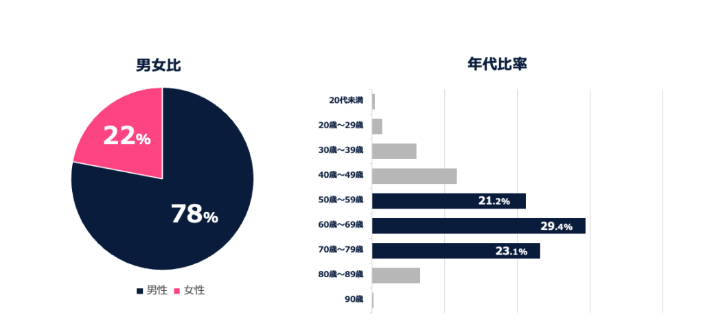 属性は、50代以上の男性が中心