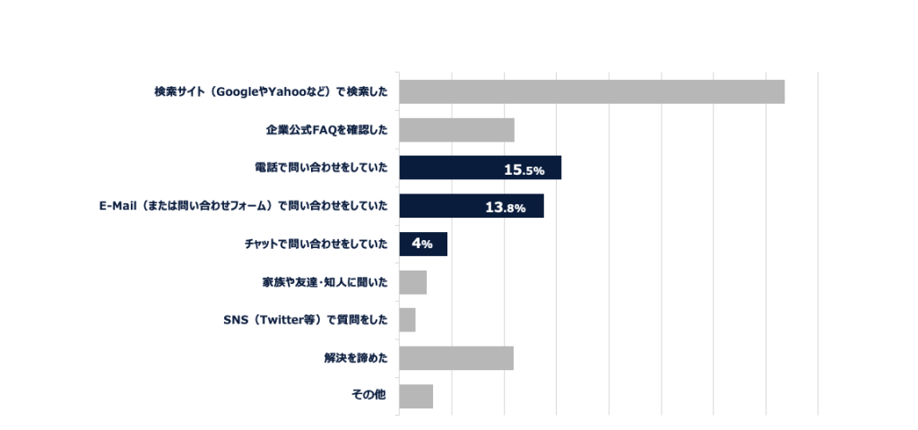 OKWAVE Plus で質問したことがある人を対象に“もし OKWAVE Plus がなかったら、どうしていましたか?”とアンケートを取ったところ、3割以上が企業コールセンターのいずれかのチャネル(電話・メール・チャット)でお問い合わせしただろうとの回答がされました。