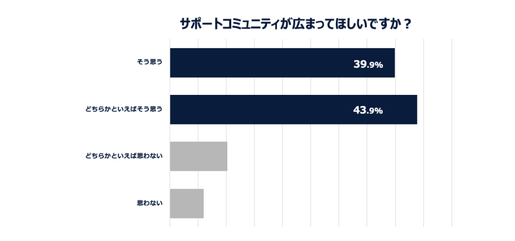 また利用者全体に、“また利用したいか”、“コミュニティ形式の企業サポートが広まってほしいか”と質問したところ、8割以上の回答者が「そう思う」、「どちらかといえばそう思う」を選ぶ結果となりました。