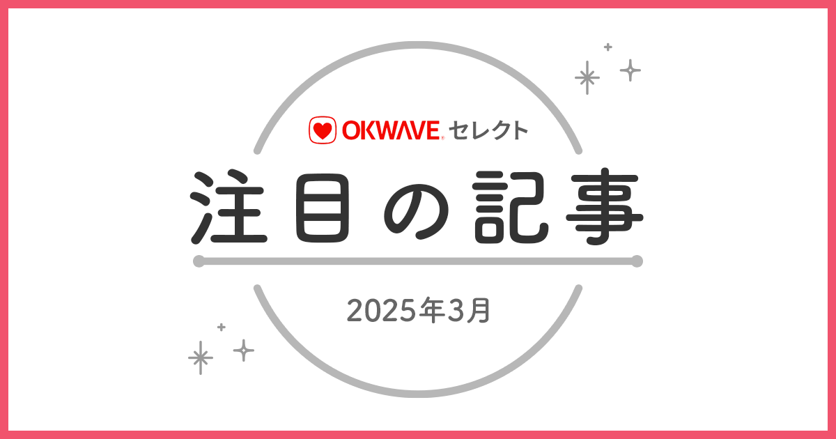 世界中のありがとうの物語を蓄積し可視化する」をパーパスとし、法人・個人向けコミュニティサービスを展開する株式会社オウケイウェイヴ(本社所在地:東京都港区、代表取締役:杉浦 元、以下「オウケイウェイヴ」)が提供する『OKWAVE セレクト』から、2025年3月に公開された注目の記事をお届けします。ぜひご覧ください。