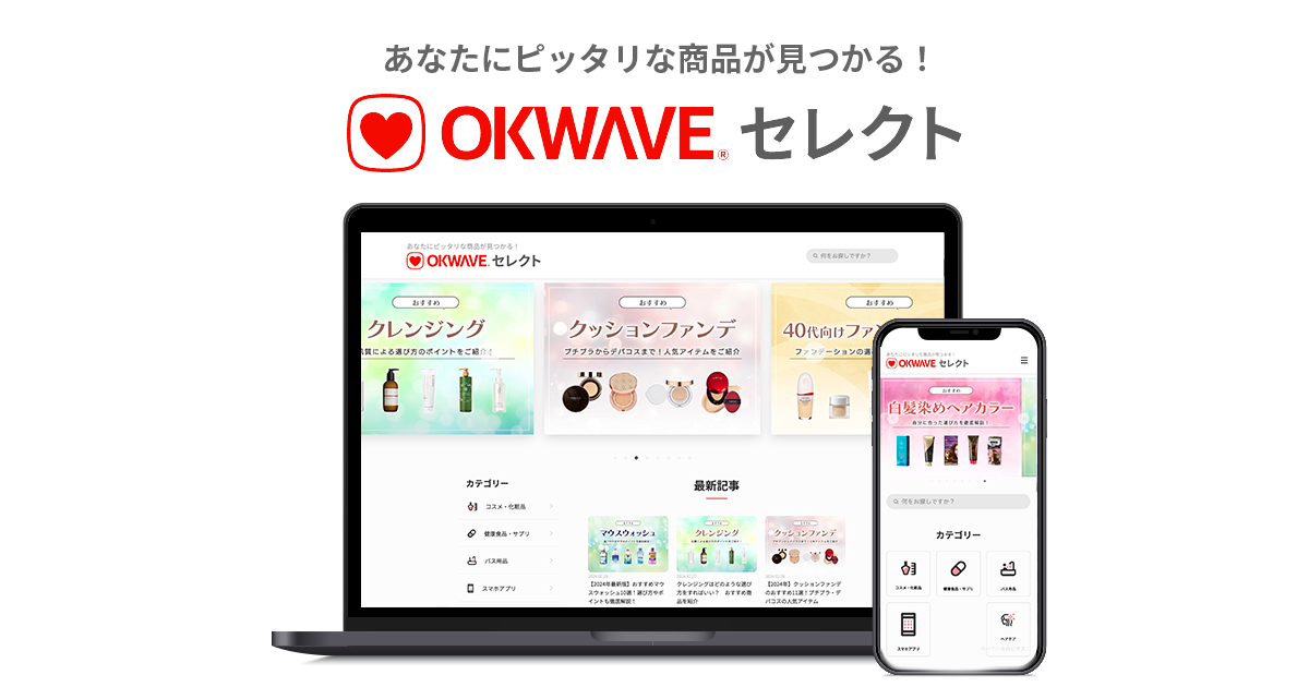 『OKWAVEセレクト』とは「OKWAVE」に寄せられる困りごとの中でも特に多いジャンルやテーマに関する商品をおすすめするメディアサイトです。「OKWAVE」では相談者の秘匿性が担保されており、「誰に聞いたらいいかわからない」「身近な人には相談しづらい」といった内容が多く寄せられていますが、商品やサービスの選択に際しては、情報過多で選びにくいという課題がありました。