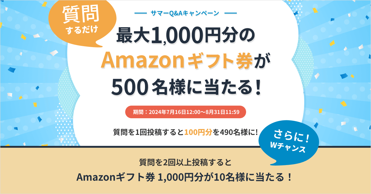 期間中に質問を2回投稿した方の中から抽選で10名様に1000円分のAmazonギフト券