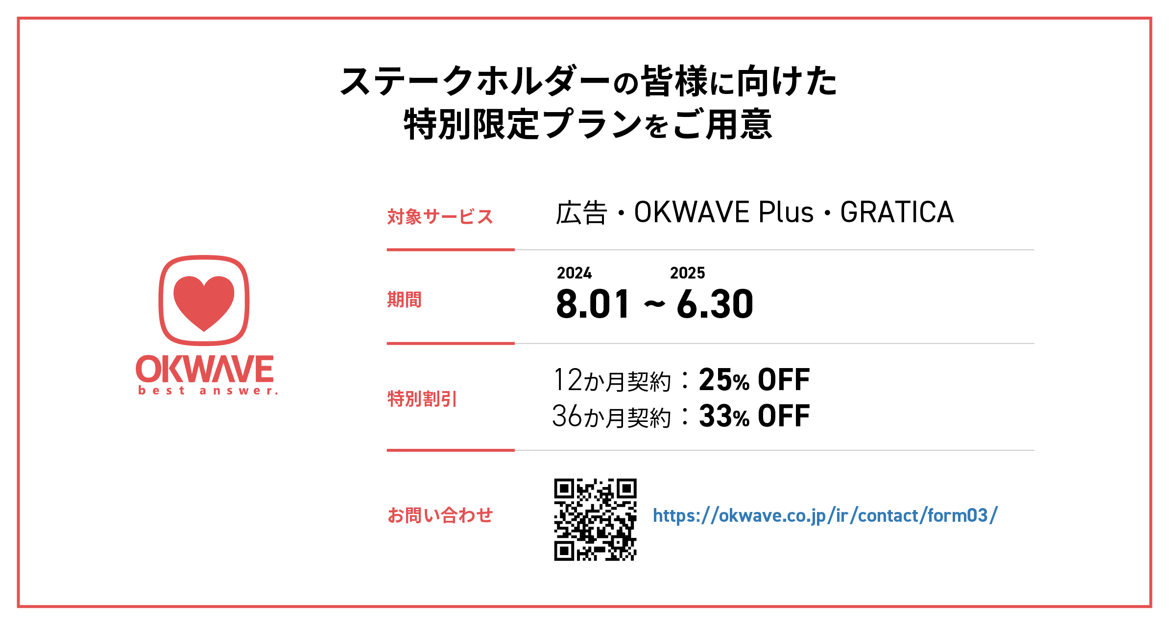 | 対象サービス | 広告、OKWAVE Plus、GRATICA |