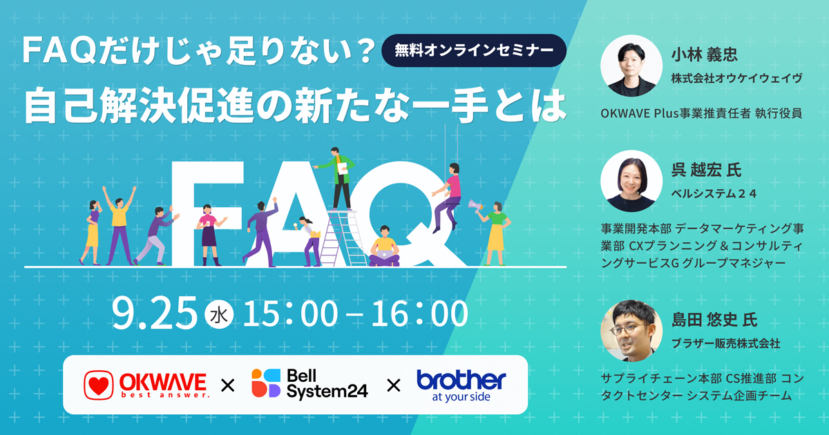 【ベルシステム24・ブラザー販売が登壇!オウケイウェイヴ・無料オンラインセミナー】FAQだけじゃ足りない?自己解決促進の新たな一手とは開催のお知らせ