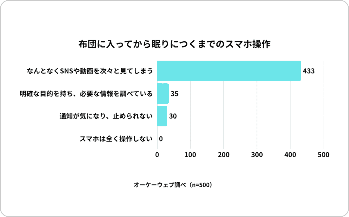 【現状】86.5%が「目的なく受動的に」寝る前スマホを操作。意思とは裏腹に指が止まらない実態。