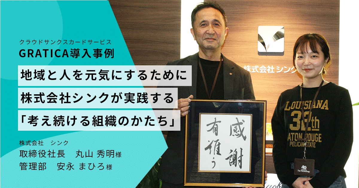 『社会のウェルビーイング向上のため、世界中の「ありがとう」の物語を蓄積し、可視化する』をパーパスに掲げる株式会社オーケーウェブ(本社:東京都港区、代表取締役:杉浦 元、以下オーケーウェブ)は、全国372以上の自治体に導入される自治体向け滞納管理システムを提供する株式会社シンク(本社:福岡県、取締役社長:丸山 秀明、以下シンク)が、社内エンゲージメントとコミュニケーションのさらなる強化を目的に、感謝を“日常の力”へ変える取り組みとして、クラウド型サンクスカード『GRATICA』を導入した事例を公開しました。