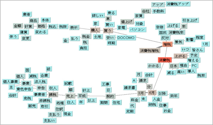 「消費税」に関連して「購入」「値上げ」などのキーワードが頻出している。