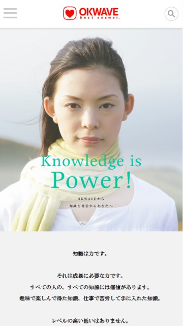 ご賛同いただいた方全員へあなただけのオリジナル画像を無料でプレゼントします。 ご自分の写真とお持ちの知識、私たちのスローガン『Knowledge is Power!』を添えた画像です。 お持ちのソーシャルアカウントで、この画像とともに表明しましょう。 ※『OKWAVE megrow』参加には出店料などの費用は一切かかりません。 |